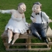 Grappig verliefd bruidspaar. Te zien bij bruidsmodezaak LO-LEN te Swalmen.